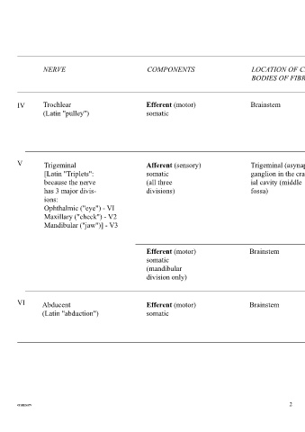 IV Trochlear Efferent (motor) Brainstem One skeletal muscle in Moving eyeball downwards